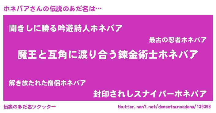 | ヘコむあだ名 | 『ホネバア(遠い目)』『ホネにー』 |