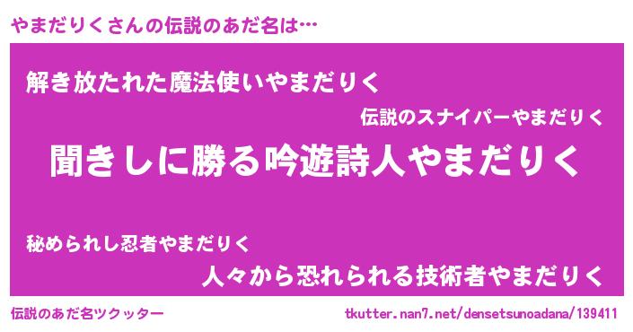 | 意味不明あだ名 | 『永久保存やまだりく』『自称やまだりく』 |