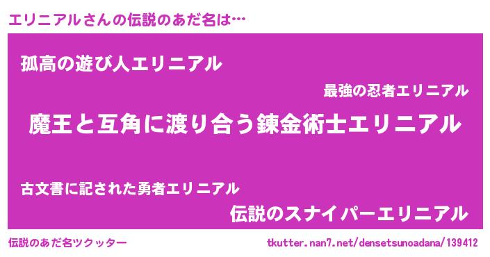 | ヒーロー風カッコイイあだ名 | 『愛の使者エリニアル』『仮面エリダー』 |