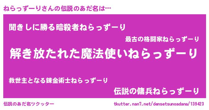 | 意味不明あだ名 | 『住所不定無職ねらっずーり(10歳)』 |