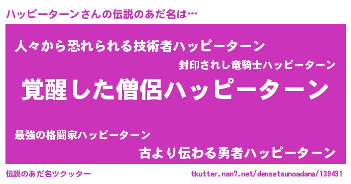 | 意味不明あだ名 | 『とにかく怪しいハッピーターン』 |