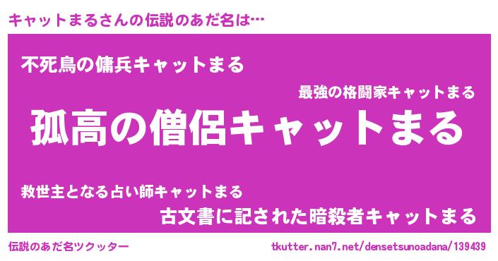 | 男性向けラノベタイトル風あだ名 | 『魔弾の王とキャットまる』 |