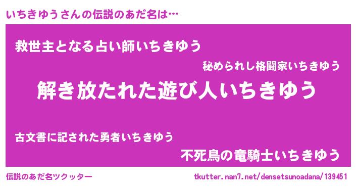 | 欧米人風あだ名 | 『アンジェラ・いちきゆう』 |