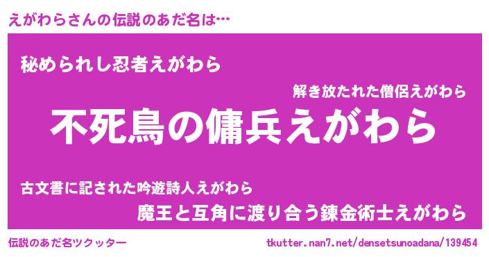 | 胡散臭い通販商品みたいなあだ名 | 『モテモテ間違いなし水晶球…その名も「えがわら」』 |