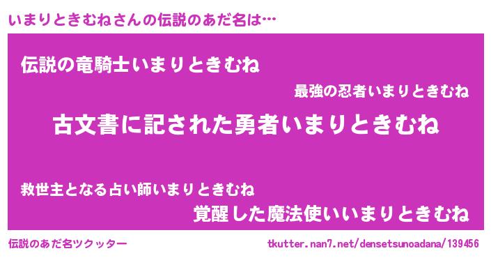 | 意味不明あだ名 | 『住所不定無職いまりときむね(86歳)』 |