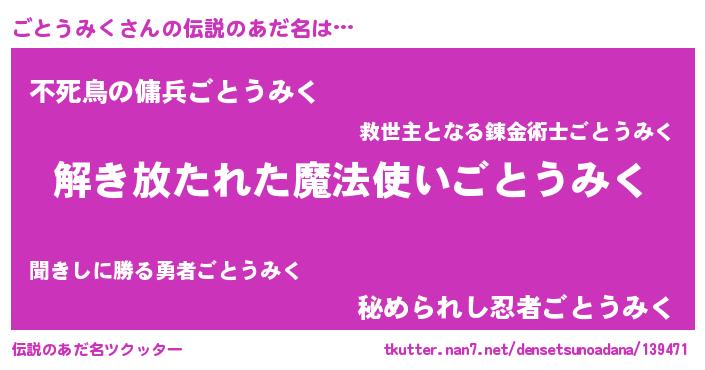 | 意味不明あだ名 | 『住所不定無職ごとうみく(3歳)』 |