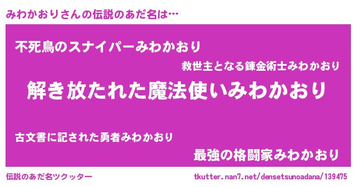 | 欧米人風あだ名 | 『みわかおり・ステッグマイヤー』 |