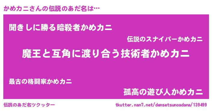 | ヘコむあだ名 | 『かめカニ(笑)』『かめお』 |