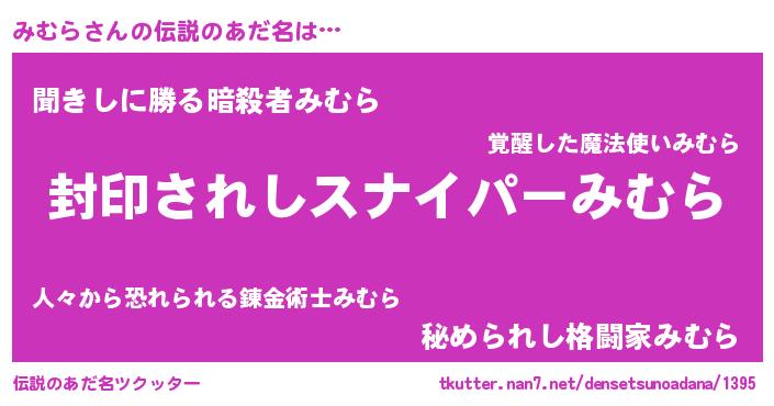 | 胡散臭い通販商品みたいなあだ名 | 『億万長者になれる霊験あらたかなお札…その名も「みむら」』 |