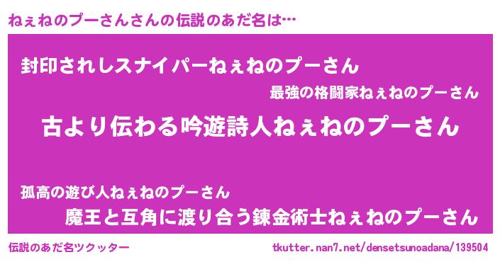| ヒーロー風カッコイイあだ名 | 『ネオネェネノプーサン』『仮面ネェダー』 |