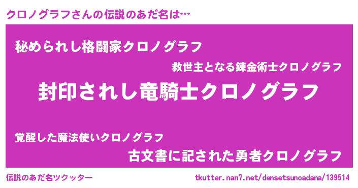 | ヒーロー風カッコイイあだ名 | 『スーパークロノグラフ』『仮面クロダー』 |