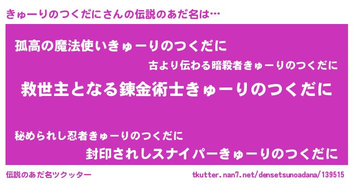 | 意味不明あだ名 | 『自称きゅーりのつくだに』 |