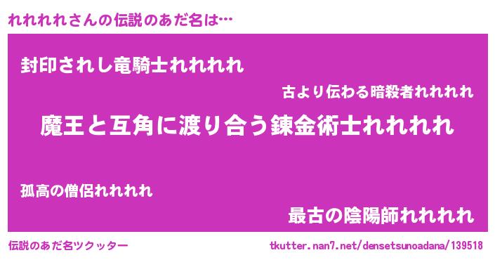 | 女子向けラノベタイトル風あだ名 | 『れれれれ恋絵巻』『れれれれ伯爵の花嫁』 |