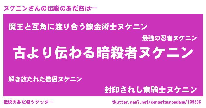 | 男性向けラノベタイトル風あだ名 | 『転生したらヌケニンだった件』 |