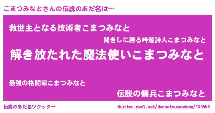 | 胡散臭い通販商品みたいなあだ名 | 『伝統あるサプリメント…その名も「こまつみなと」』 |
