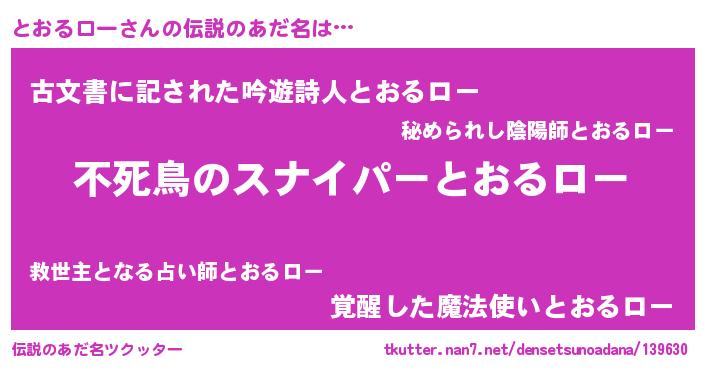 | ヒーロー風カッコイイあだ名 | 『仮面トオダー』『スーパートオルロー』 |