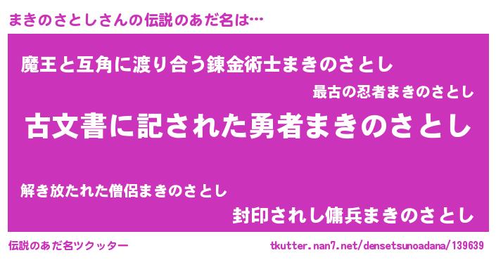 | 男性向けラノベタイトル風あだ名 | 『まきのさとしに滅ぼされるだけの簡単なお仕事です』 |