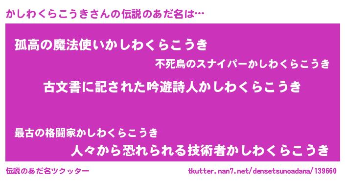 | 意味不明あだ名 | 『永久保存かしわくらこうき』 |