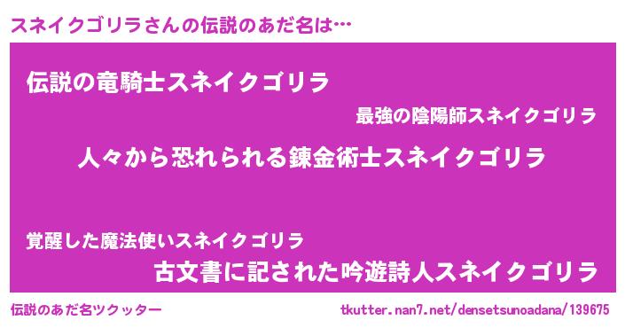 | 意味不明あだ名 | 『住所不定無職スネイクゴリラ(85歳)』 |