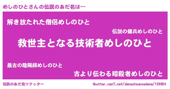 | ヒーロー風カッコイイあだ名 | 『天空の使者めしのひと』『仮面メシダー』 |