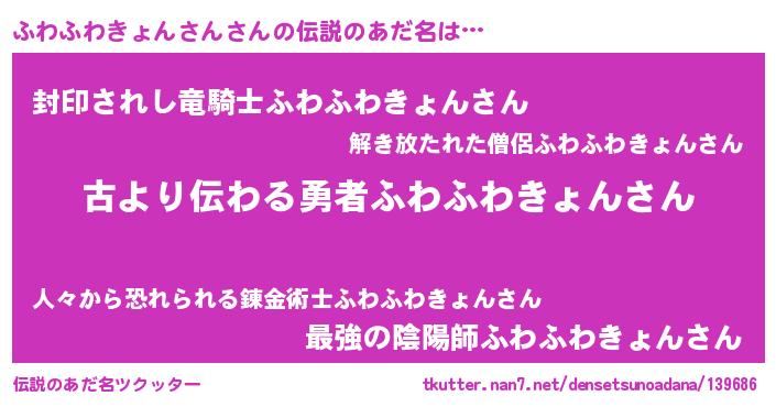 | 胡散臭い通販商品みたいなあだ名 | 『来世でも幸せになれる水素水…その名も「ふわふわきょんさん」』 |