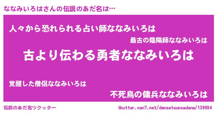 | ヒーロー風カッコイイあだ名 | 『ネオナナミイロハ』『仮面ナナダー』 |