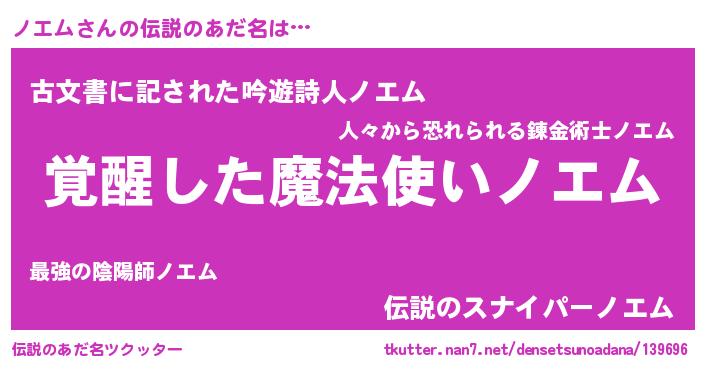 | 意味不明あだ名 | 『とにかく怪しいノエム』『自称ノエム』 |
