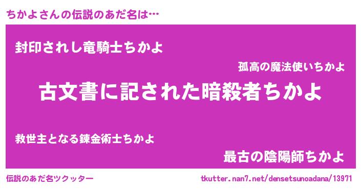 | ヒーロー風カッコイイあだ名 | 『ネオチカヨ』『スーパーチカヨ』 |