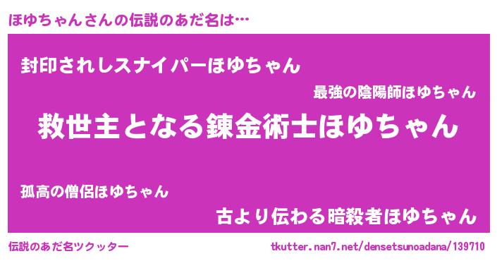 | ヒーロー風カッコイイあだ名 | 『慈愛の使者ほゆちゃん』『仮面ホユダー』 |