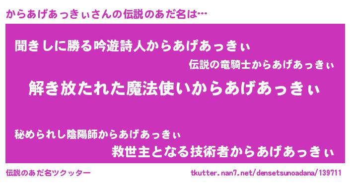 | ヘコむあだ名 | 『からを』『からあげあっきぃ(小並感)』 |