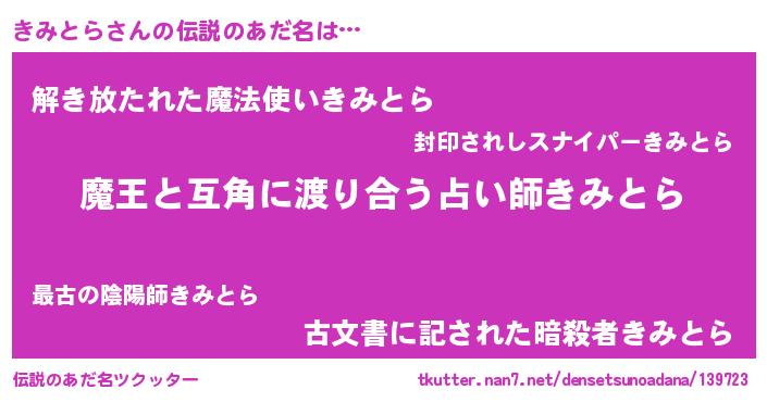 | ヘコむあだ名 | 『きみっぺ』『きみとら(小並感)』 |