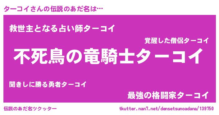 | 女子向けラノベタイトル風あだ名 | 『闇のターコイ』『死神ターコイの再婚』 |