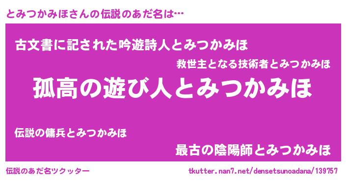 | 意味不明あだ名 | 『住所不定無職とみつかみほ(74歳)』 |