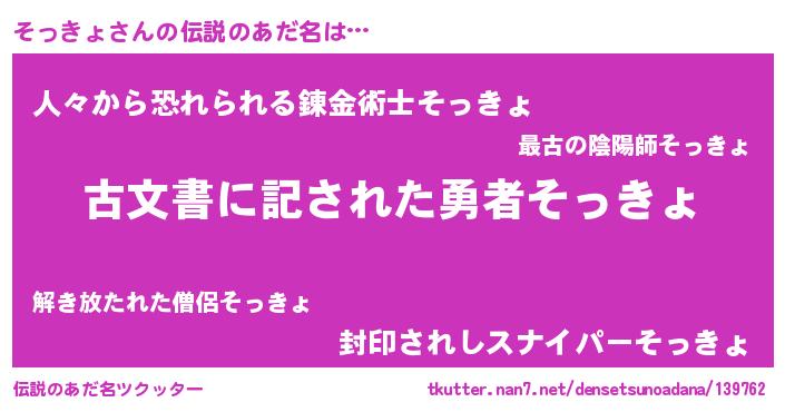 | 意味不明あだ名 | 『永久保存そっきょ』『自称そっきょ』 |