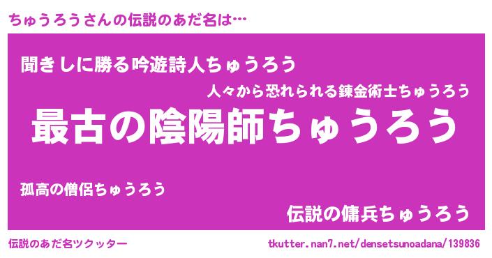 | ヒーロー風カッコイイあだ名 | 『ウルトラちゅうろうマン』 |