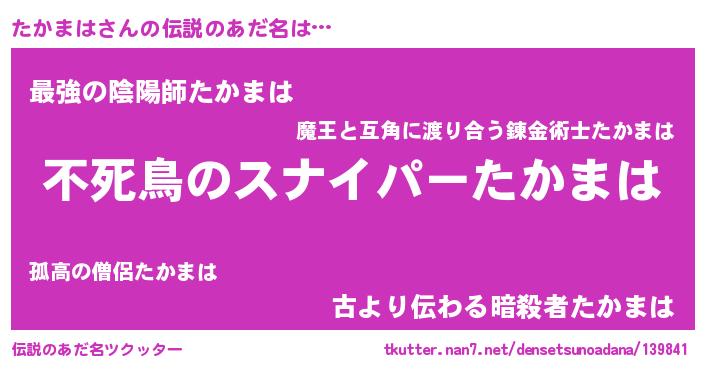 | 胡散臭い通販商品みたいなあだ名 | 『モテモテ間違いなし霊験あらたかなお札…その名も「たかまは」』 |
