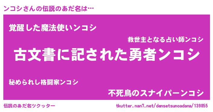 | 意味不明あだ名 | 『永久保存ンコシ』『自称ンコシ』 |