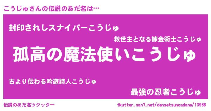 | ヒーロー風カッコイイあだ名 | 『暗黒騎士コウ』『スーパーコウジュ』 |