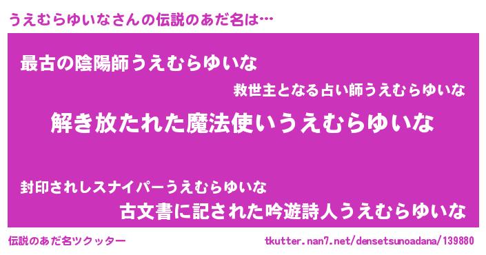 | ポケモン風あだ名 | 『ヒウエムラユイナ』『ウエムダネ』 |