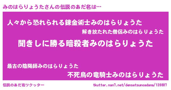 | 意味不明あだ名 | 『自称みのはらりょうた』 |