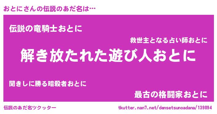 | ヒーロー風カッコイイあだ名 | 『幻影騎士オト』『仮面オトダー』 |