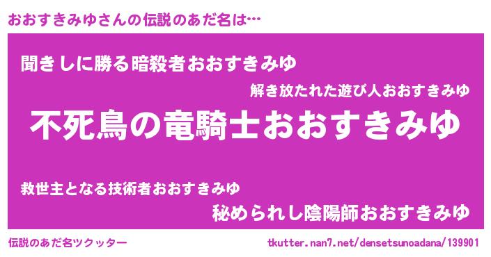 | ヒーロー風カッコイイあだ名 | 『スーパーオオスキミユ』『仮面オオダー』 |