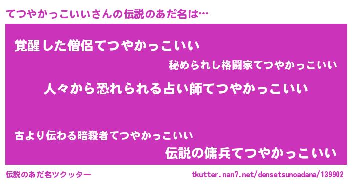 | ヒーロー風カッコイイあだ名 | 『正義の使者てつやかっこいい』 |