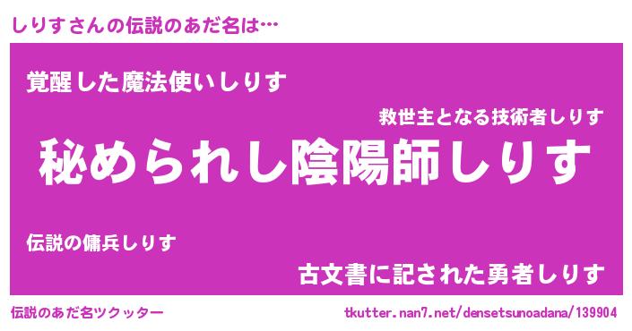 | ポケモン風あだ名 | 『シリスダネ』『ヒシリス』 |