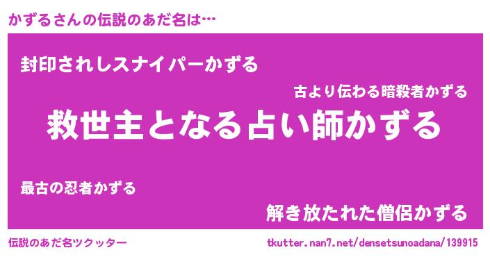 | ヒーロー風カッコイイあだ名 | 『最強戦士カズル』『慈愛の使者かずる』 |