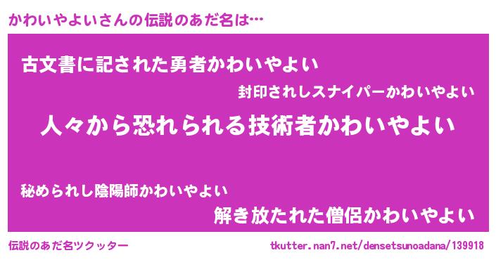 | 胡散臭い通販商品みたいなあだ名 | 『100人中100人が認めたマグネット磁石…その名も「かわいやよい」』 |