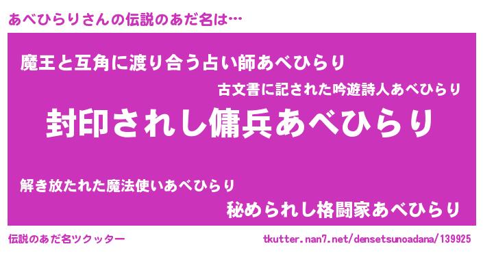 ヒーロー風カッコイイあだ名 | 『スーパーアベヒラリ』『ネオアベヒラリ』 |