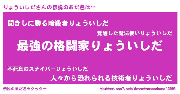 | ファンタジー風あだ名 | 『エターナルリョウイシダー』 |