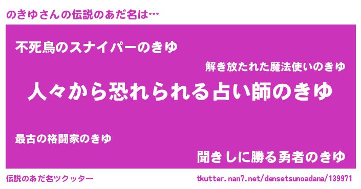 | 男性向けラノベタイトル風あだ名 | 『ノキユスレイヤー』 |
