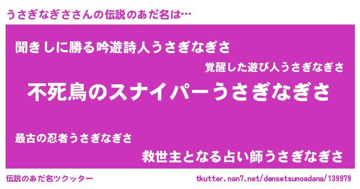 | ヘコむあだ名 | 『うさっふぃ~』『うさぎなぎさ(小並感)』 |